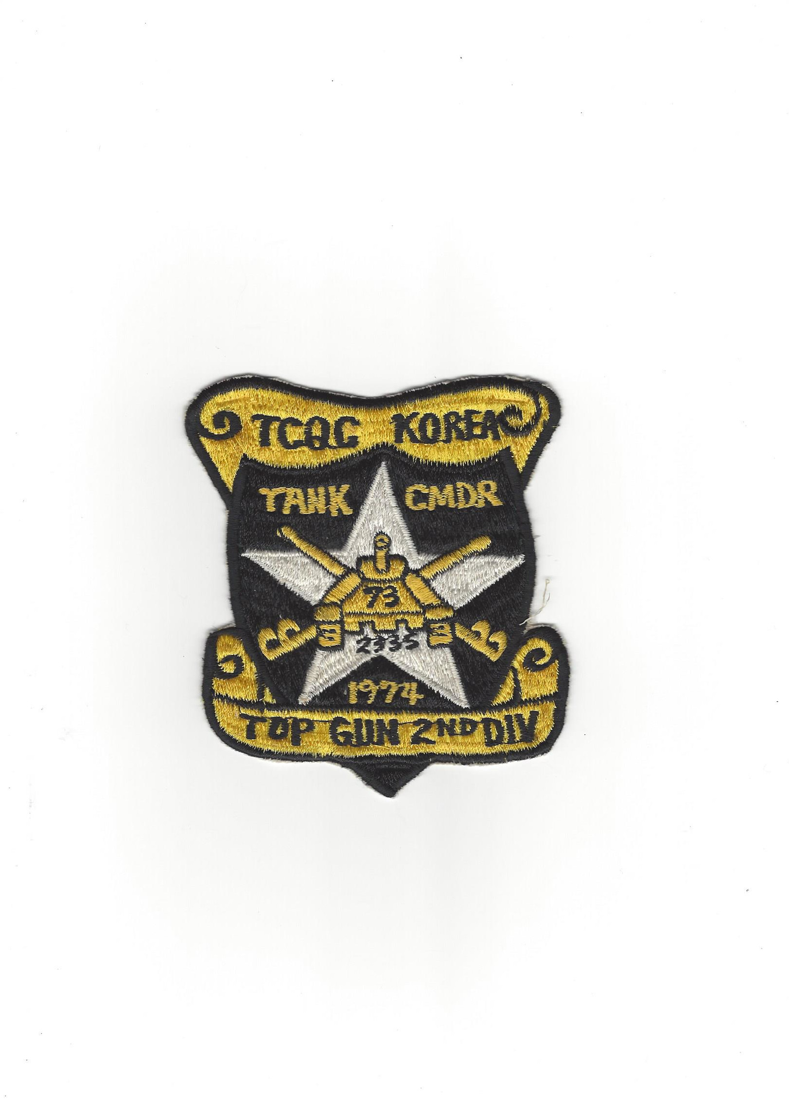 1st Bn, 73rd Armor 1974 "Top Gun 2nd Div" TCQC patch (2nd Inf Div). Korean made, all embroidered with a standard edge. "2335" is apparently the tank gunnery score this crew achieved. ASMIC #73B1 (variant).