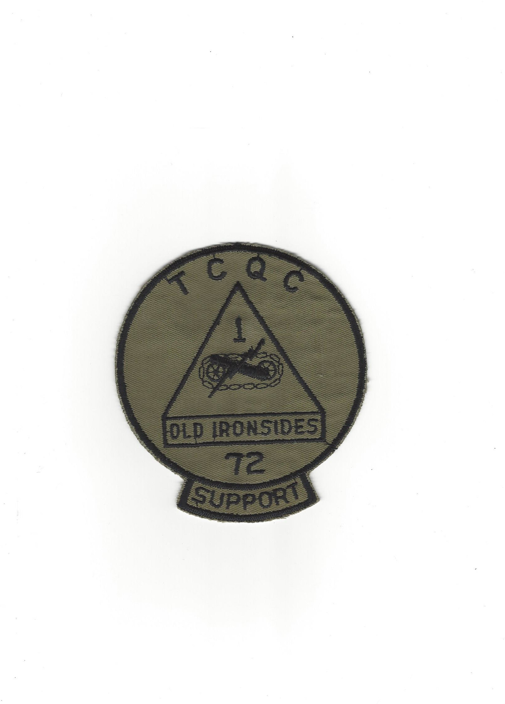 1st Armored Division 1972 TCQC Support patch. German made, embroidered on twill with a standard edge. ASMIC #1E.