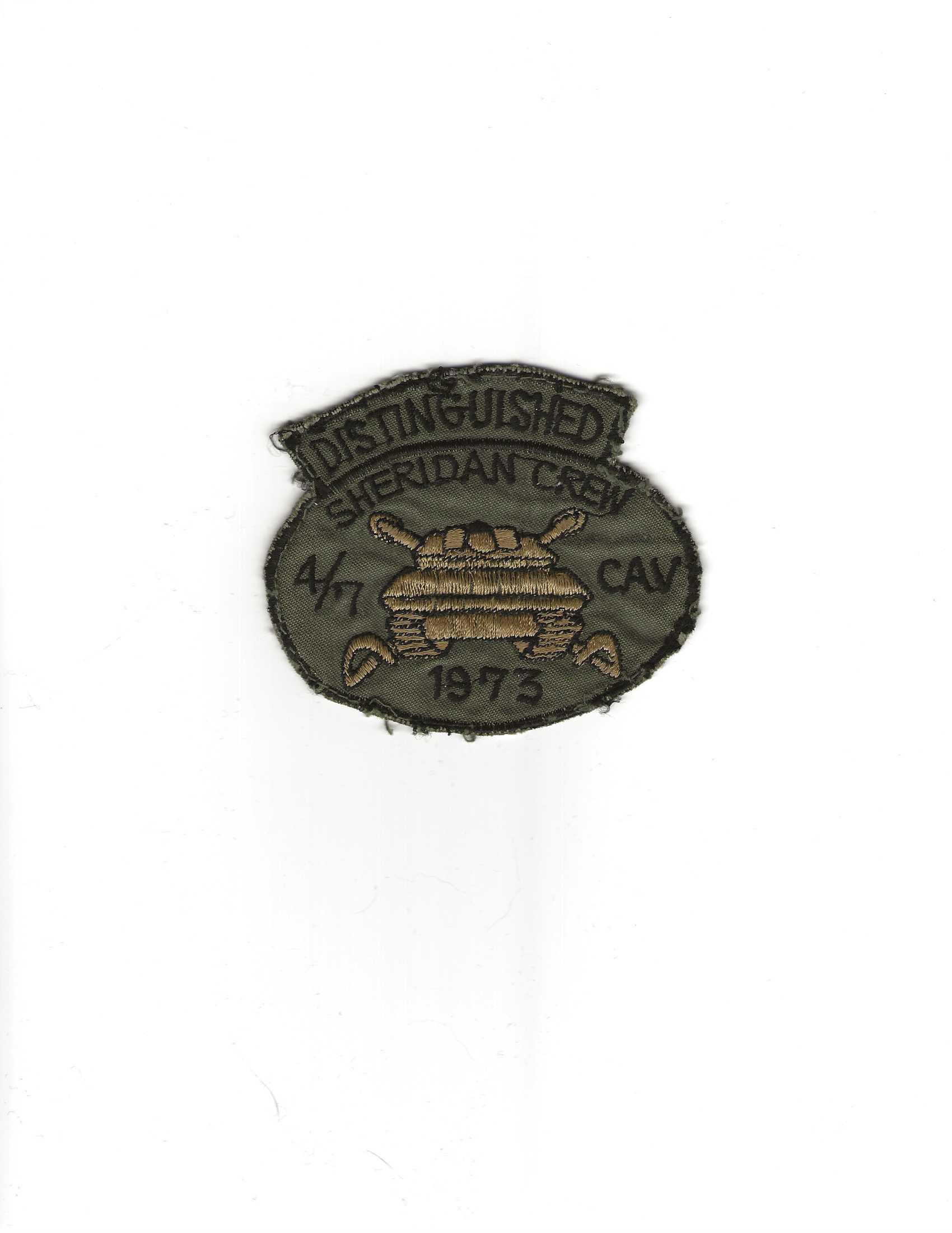 4th Sqdn, 7th Cavalry 1973 Distinguished Sheridan qualification patch (2nd Inf Div). Korean made, embroidered on twill with a standard edge. Not in ASMIC catalog.