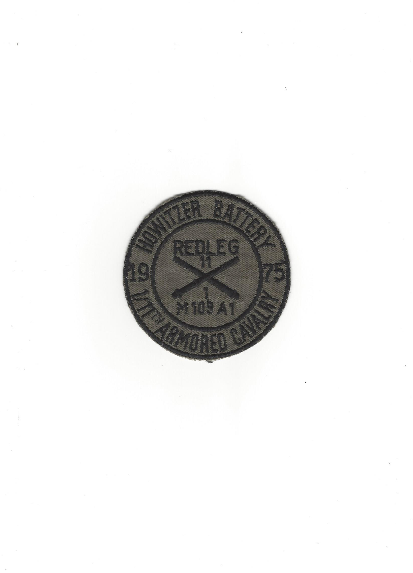 1st Sqdn, 11th Armd Cavalry Regt 1975 Qualified M109 self-propelled howitzer crew patch. German made, embroidered on twill with a standard edge. ASMIC #11T5.