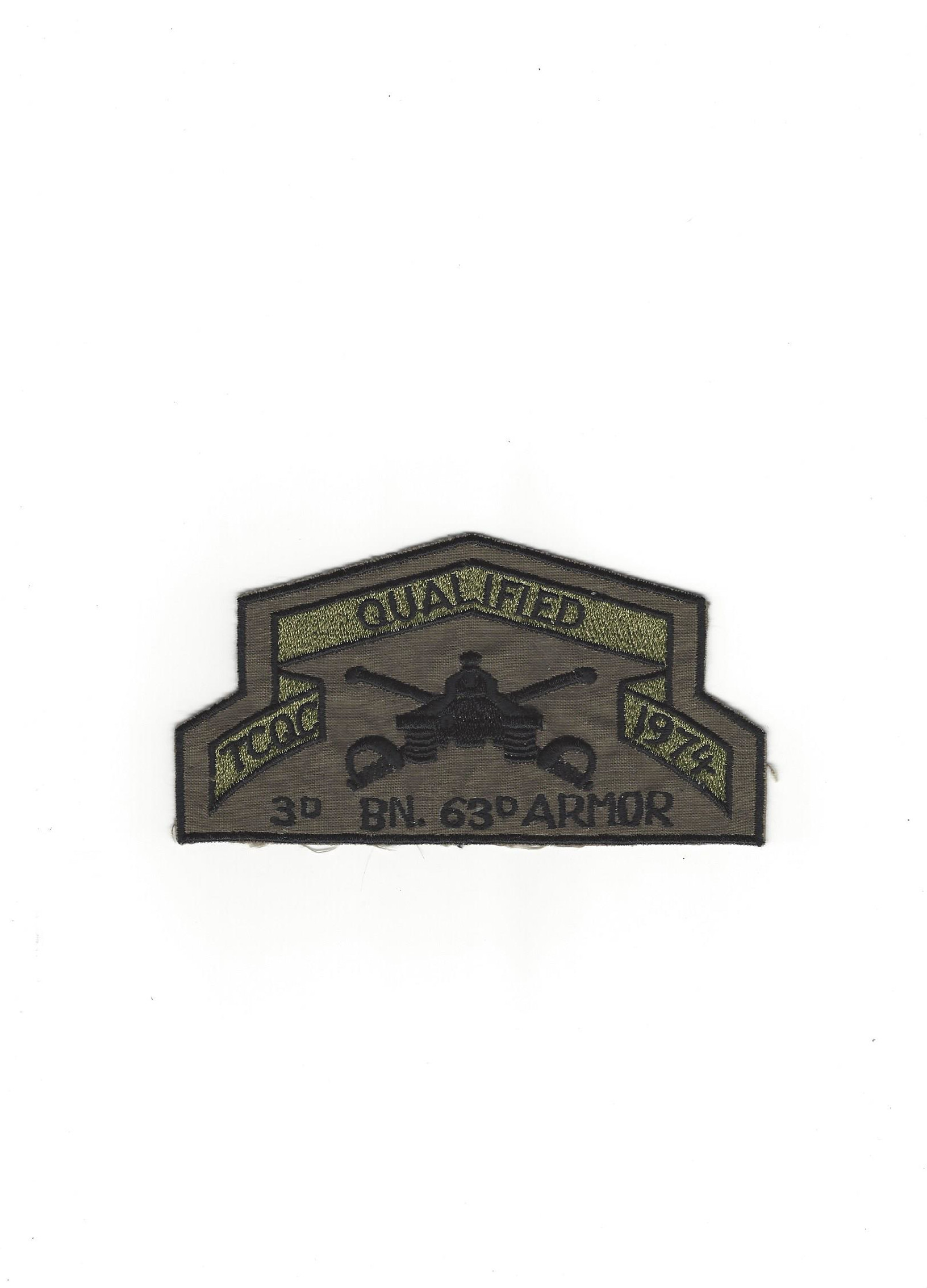 3rd Bn, 63rd Armor 1974 Qualified TCQC patch (1st Inf Div(M)(Fwd)). German made, embroidered on twill with a standard edge. Not in ASMIC catalog.