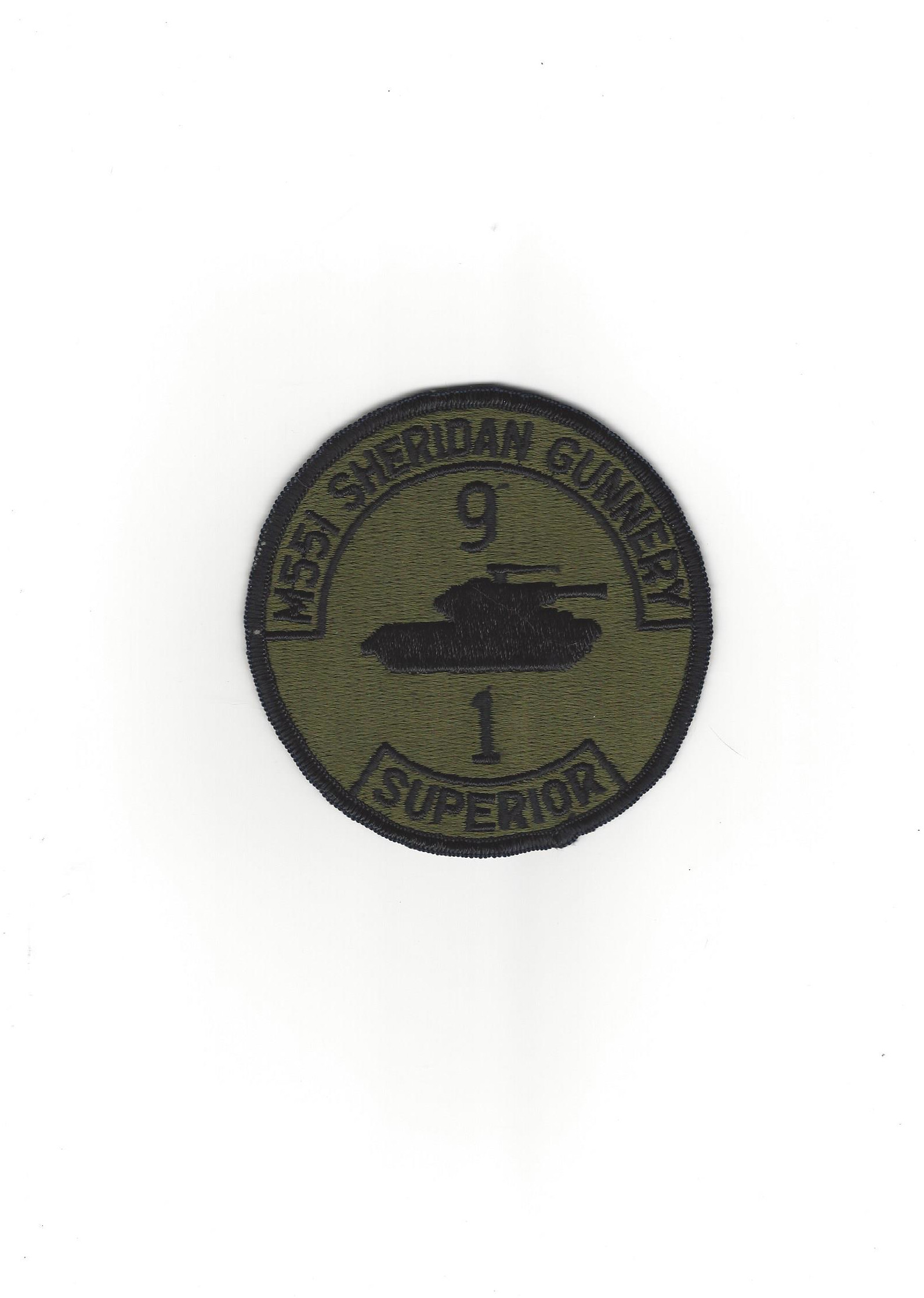 1st Sqdn, 9th Cavalry Superior M551 Qualification patch (1st Cav Div). This patch was probably worn in the late 1970s. U.S. made, all embroidered with a merrowed edge. ASMIC #9B1.